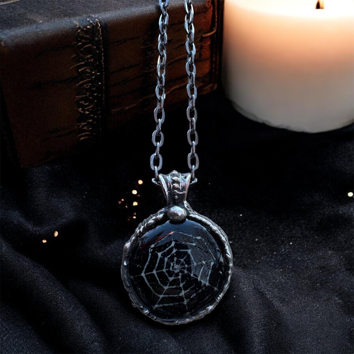 Handcrafted Tiffany technique Dichroic glass fused spiderweb necklace~