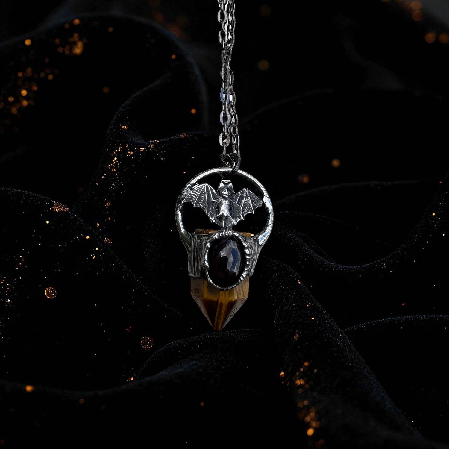 The Nocturne Talisman | Tiger’s Eye & Star Garnet Bat Necklace