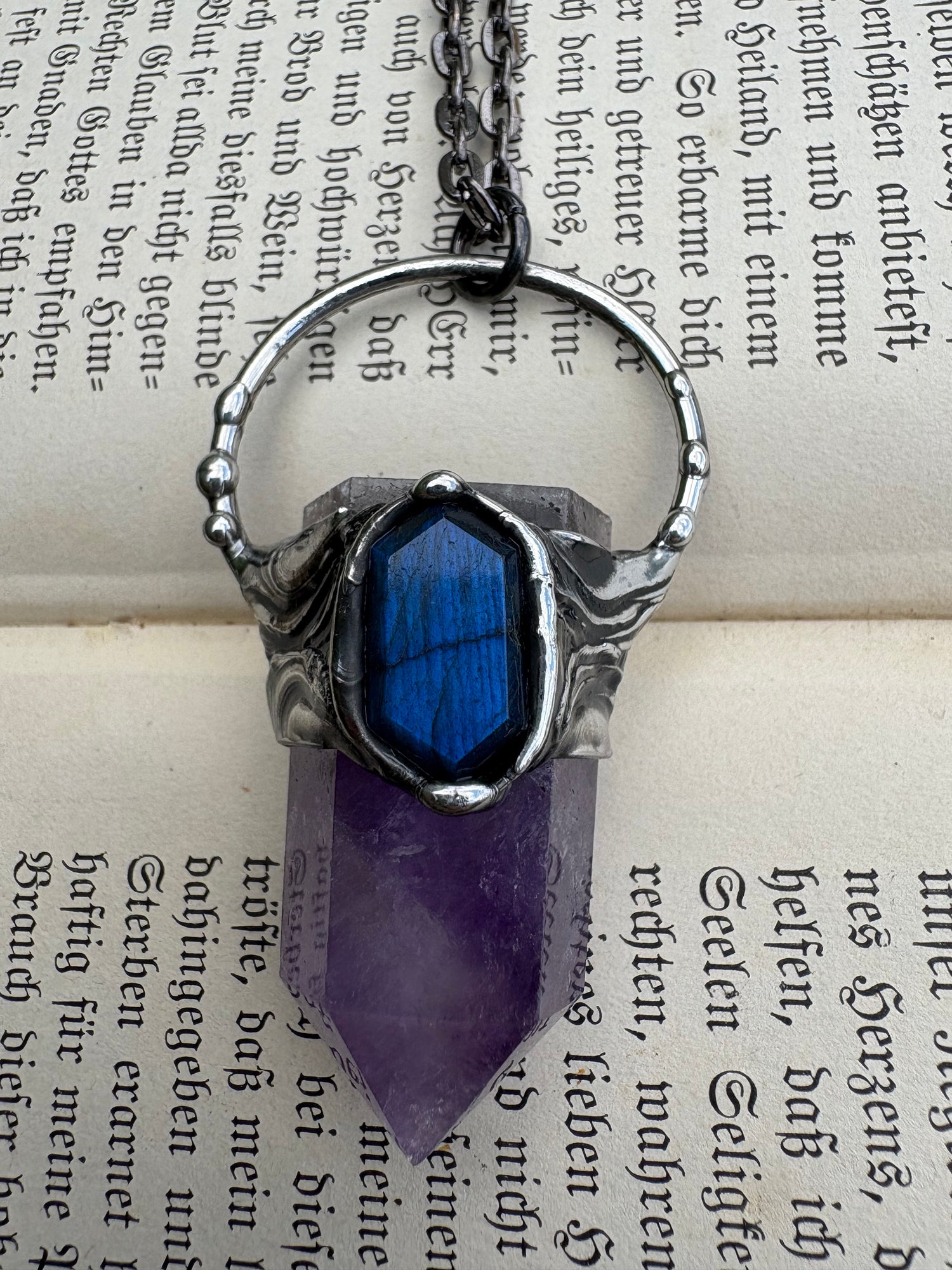 Handcrafted amethyst and blue labradorite crystal Talisman necklace-