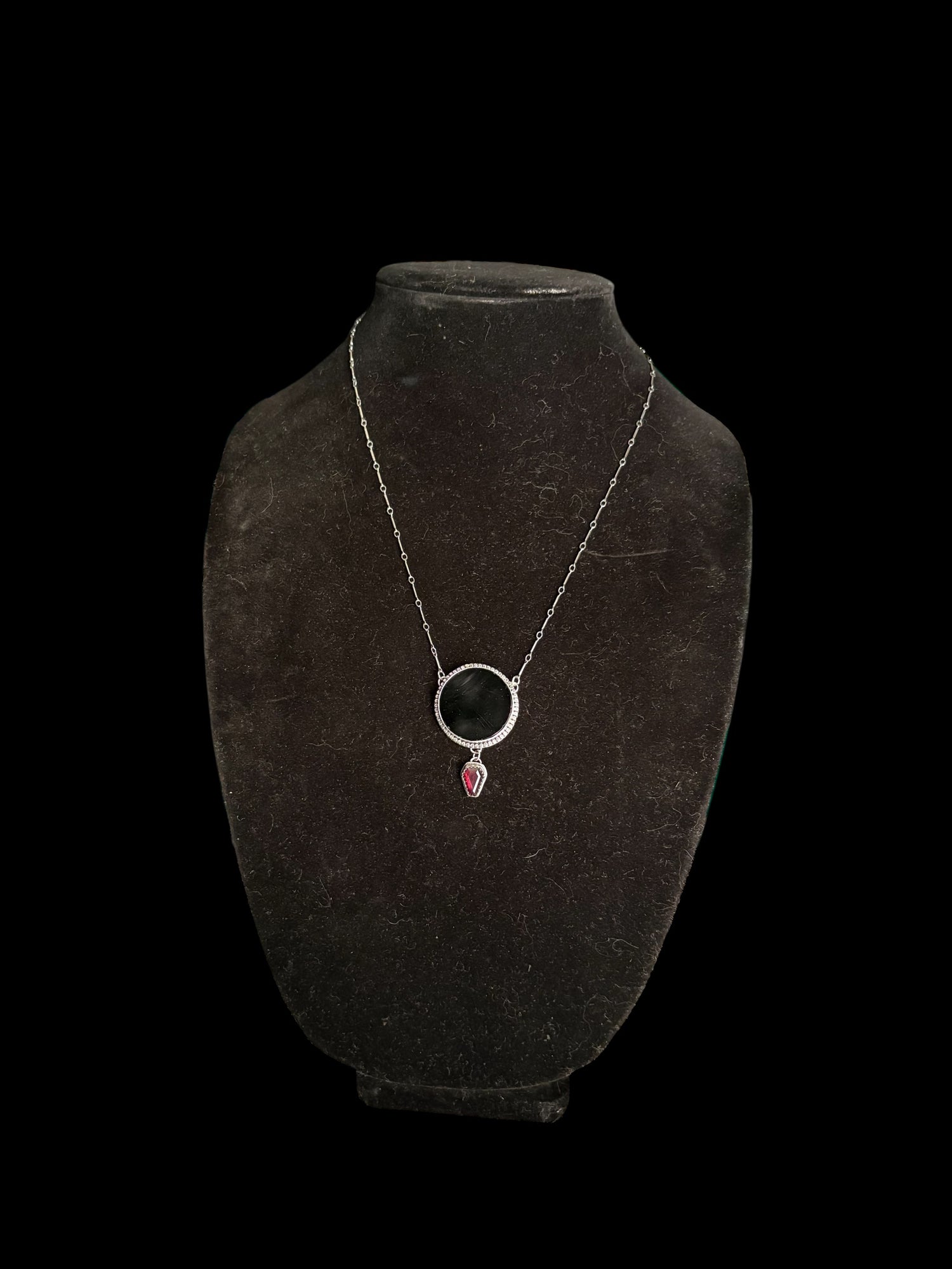The Obsidian Veil-obsidian scrying mirror with coffin cut garnet Sterling silver necklace-