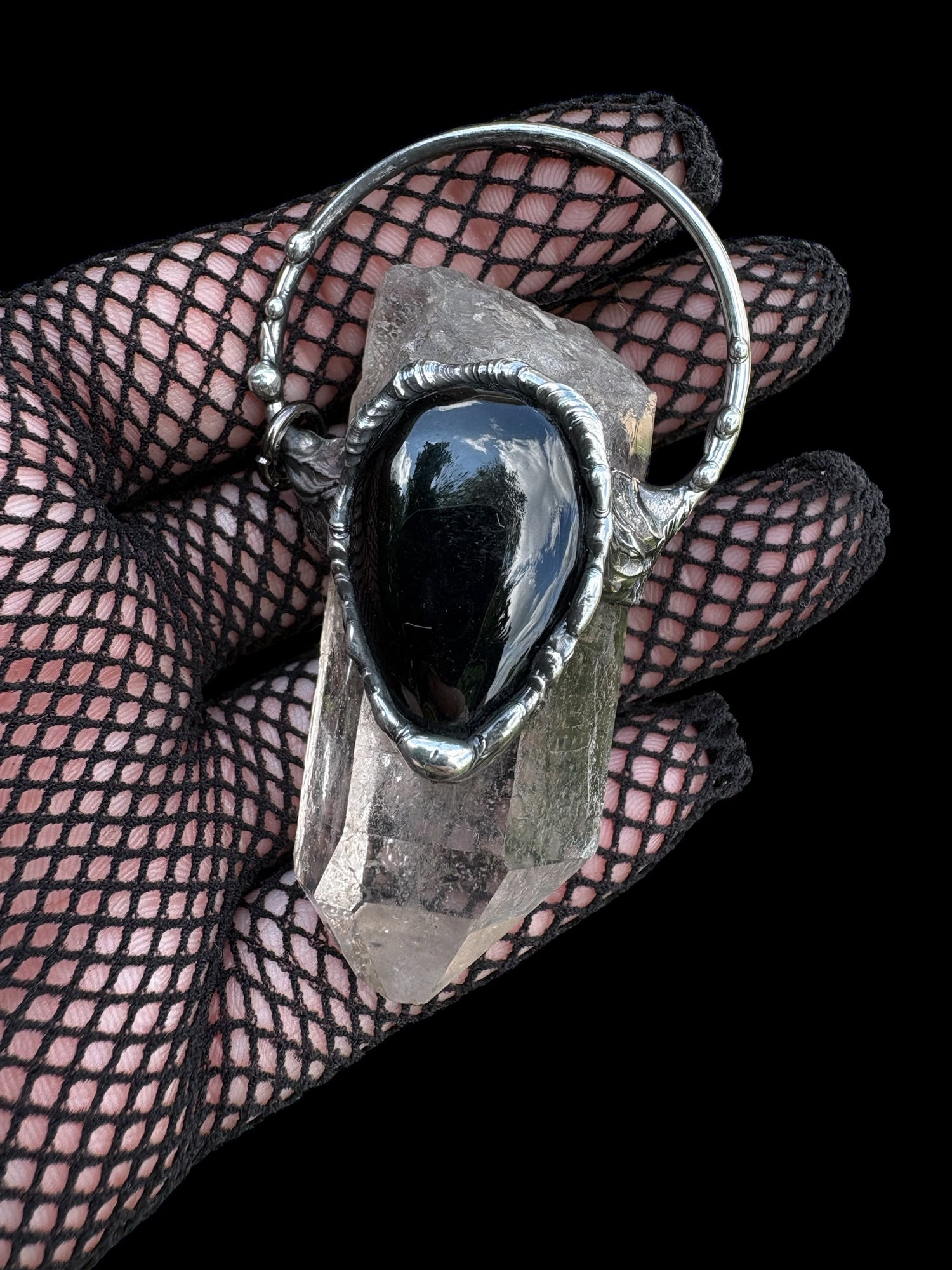 The Void Pendant – Obsidian & Clear Quartz crystal talisman-
